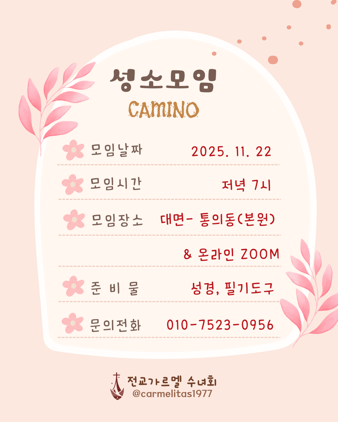 ¡¼¼º¼Ò¸ðÀÓ¡½11¿ù 'Camino' ¼º¼Ò¸ðÀÓ ÃÊ´ëÇÕ´Ï´Ù!!! (11¿ù22ÀÏ Åä¿äÀÏ)